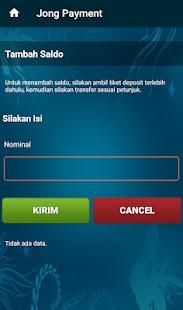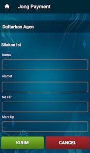 Aplikasi android Jong Payment adalah aplikasi mobile gratis untuk member-member setia Jong Payment di mana pun berada. Aplikasi ini memudahkan Anda dalam melakukan berbagai transaksi seperti pengisian pulsa, pembelian token listrik, pembayaran tagihan pasca bayar, pembelian voucher game, dll.