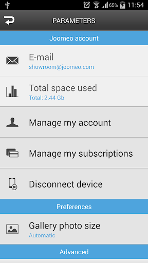 Store your photos online and share them with your friends with Joomeo for android.
