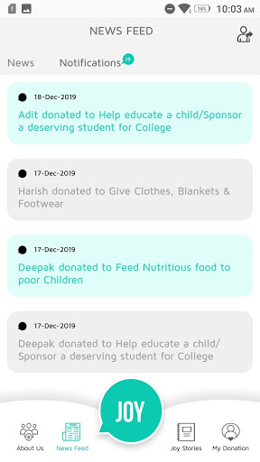 Joy Story is the charity app by Joy Story Foundation that allows you to to build stories around “Joy for Everyone” by practicing the values of collective philanthropy and by maintaining utmost transparency in order to achieve it.