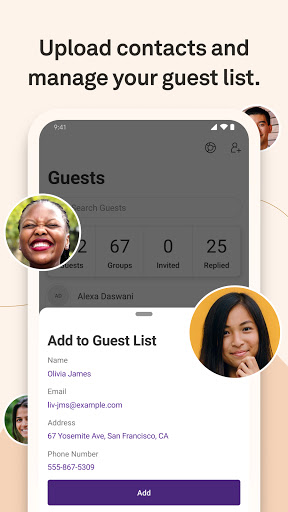 View and update your wedding website, wedding schedule, and guest list on the go.