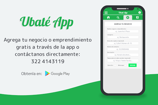 Está es la primera versión de lo que será una App que reúna: información, comercio, turismo, empleo y muchas más funciones de beneficio a Ubaté y su comunidad.