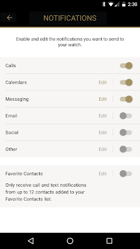 • Choose which calendars you want synced to your smart watch and enable or disable calendar reminders.
