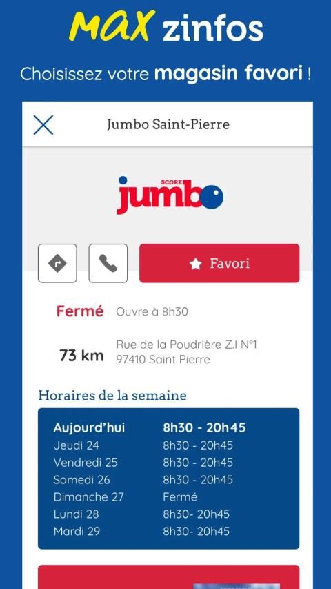 Retrouvez le magasin le plus proche, vérifiez ses horaires, les services proposés et téléchargez ses catalogues du moment grâce à l’application Jumbo Score Max.