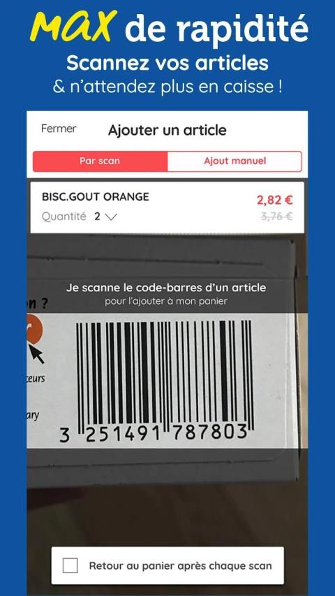Vous en avez marre des files d’attente trop longues ? Scannez vos produits, depuis votre smartphone, pour les ajouter à votre panier et éviter ainsi l’attente en caisse. Vos passages en caisse sont simplifiés grâce à l’appli Jumbo Score Max.