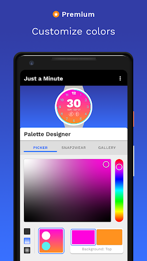Just a Minute™ is a minute-forward watch face design for Android Wear OS and has been completely refreshed in 2020! Tell the time, track your steps, customize your integrated weather report, and express yourself with color using the new Palette Designer.