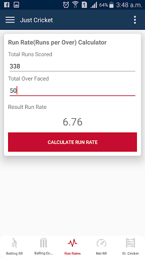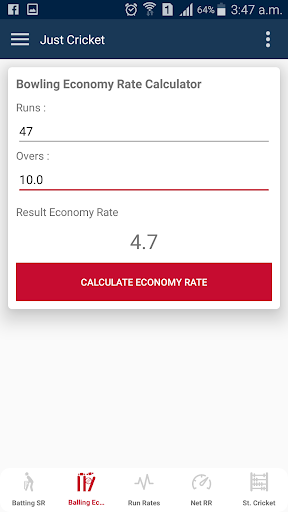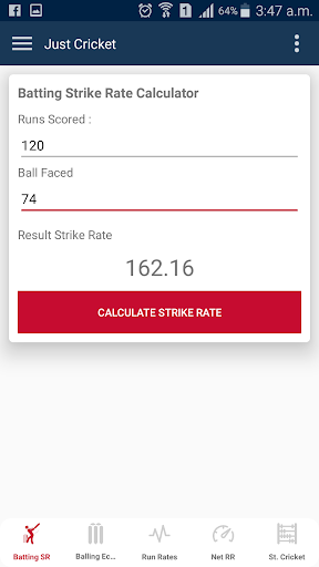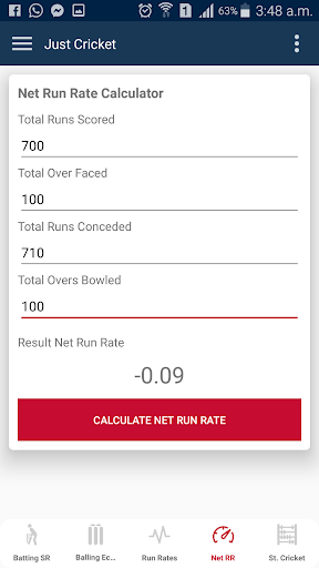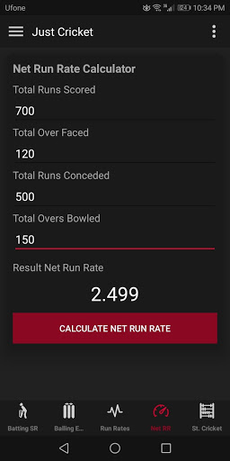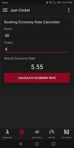 You can Calculate your favorite Batsman Strike Rates, Bowler Economy Rates and also calculate team run rate in current match and Net run rates of tournament.