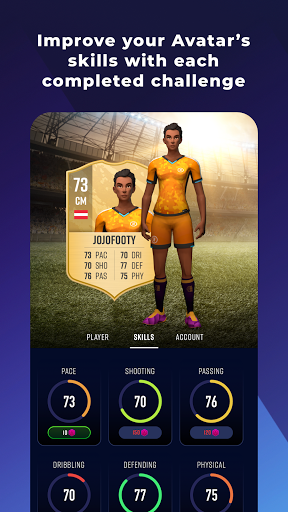 With your very own Avatar and Player Card you can build your digital career in the app. By completing challenges you progress through different levels in the game. Increase the stats on your Player Card and unlock cool new gear and cosmetics for your Avatar on your way to become a Just Football legend.