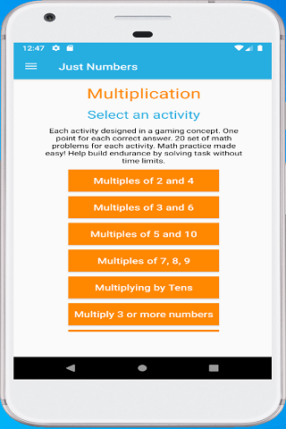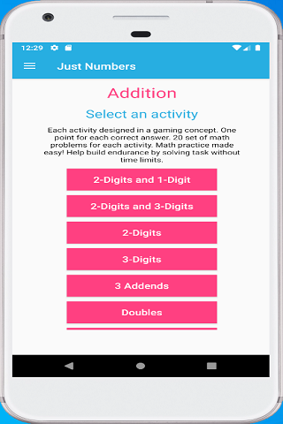 ► Each activity consists of 20 set of math problems and designed based on game concept. One point awarded for each correct answer.