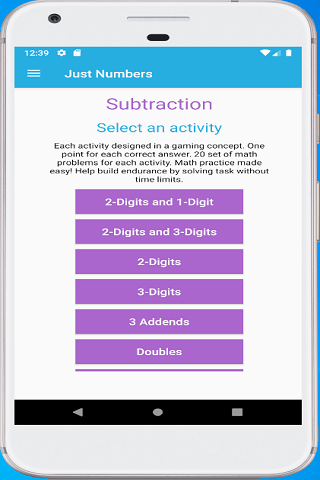 ► Each operator has 9 set of activities - Calculating with multi-digit whole numbers, math equations, add or subtract doubles, solve simple math word problems.