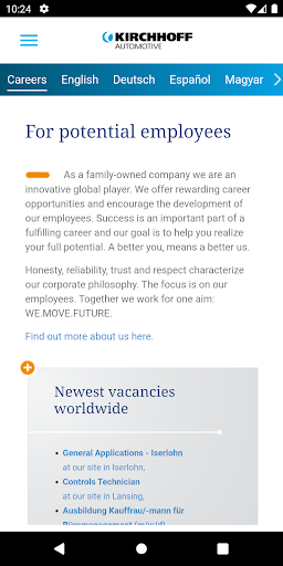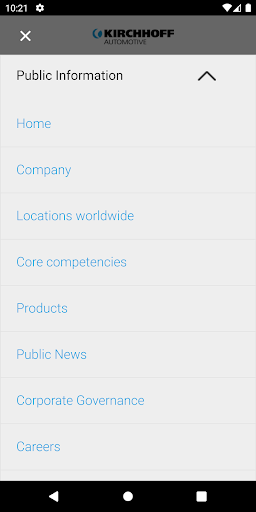 In the K>APP you will find public information and current news from KIRCHHOFF Automotive. In order to use additional functions on the K>APP and see internal content, please log in with your individual access data under the tab "Internal information". Have you forgotten your access data or not received any yet? If so, please contact your local HR department.