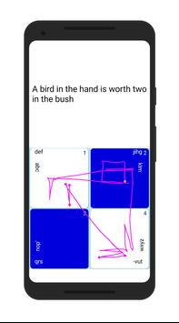 K4 Keyboard has only 4 keys, arranged as a 2 x 2 grid in the lower half of the touch screen. Each key is square of side with more than an inch. So error in touching the required key is almost nil. Each digit, letter, normally used symbols and commands are given specific swipes. These swipes trace one or more edges of a square.