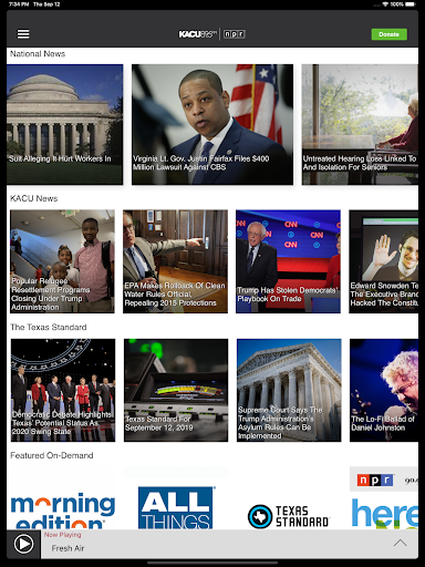 • Access KACU's current programs and a variety of other public radio shows and podcasts easily and quickly.