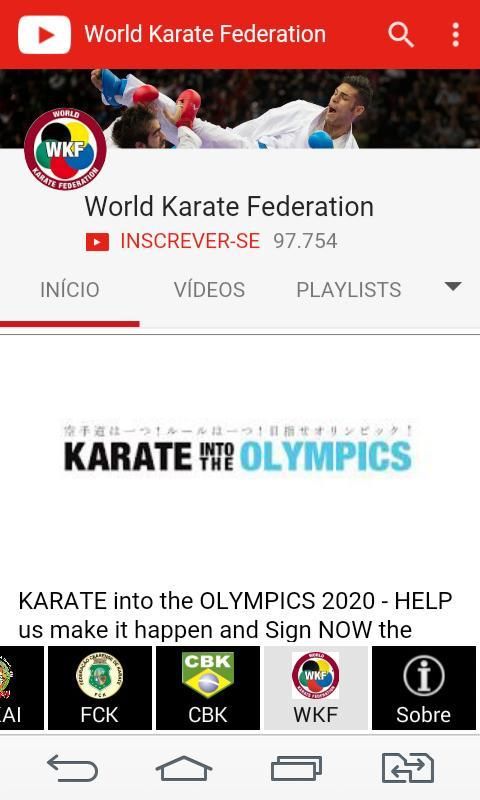 9- WKF: World Karate Federation “Federação Mundial de Karate”, visualize os vídeos promocionais e das principais competições do karate a nível munidal.