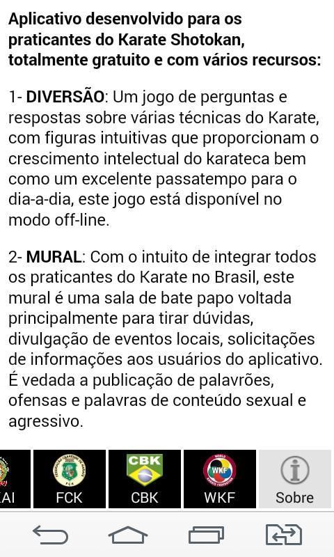 - Este aplicativo é de distribuição gratuita e tem a finalidade de disseminar o Karate no Brasil.