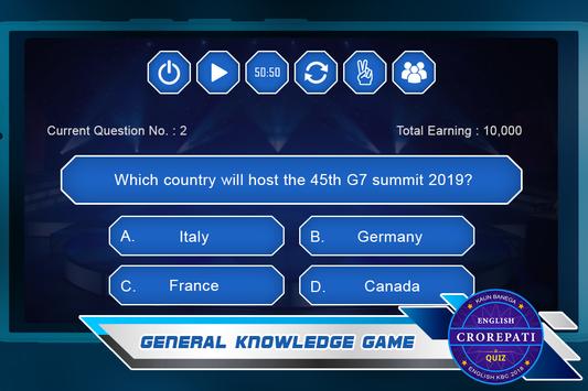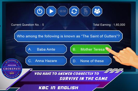 Play India's biggest general knowledge quiz game KBC 2018 in English with new gk and current affairs questions and improve your general knowledge and current affairs.