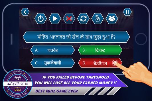 Play India's biggest general knowledge quiz game KBC 2018 in all Indian languages with new gk and current affairs questions and improve your general knowledge and current affairs.