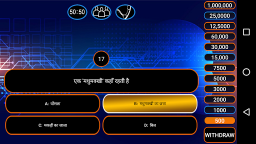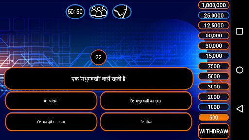Let's play India's biggest general knowledge quiz game KBC in Hindi language with new gk and current affairs questions and improve your general knowledge and current affairs.