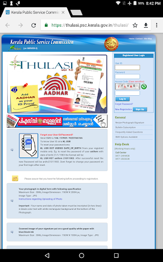 * Kerala psc Thulasi One Time Registration & Login & Notifications