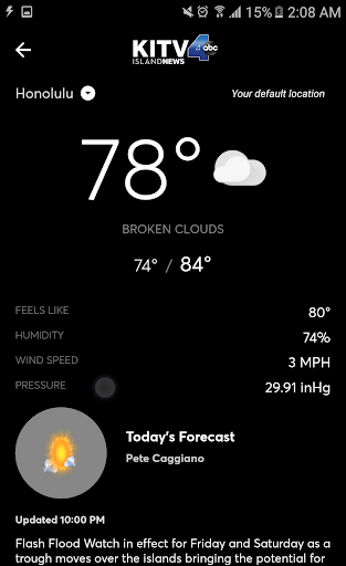 Check out our WEATHER Focused app which brings weather and traffic to the surface - search for "KITV Weather & Traffic"