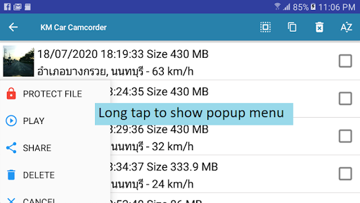 - Loop recording. Limit file storage by user define storage size and limit quantity of protected file.
