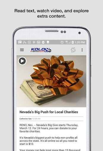 The Reno, NV news experience you’ve been waiting for is here! Catch the latest news, sports and weather wherever you go. The KOLO News App unites the best features from the KOLO newscast and Web site. It makes viewing and sharing the news easy. You can read and watch the latest news or share it with family and friends.