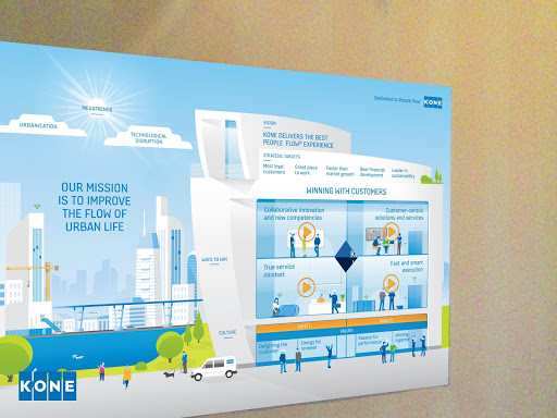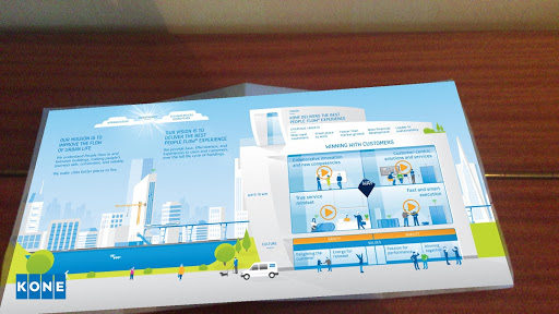KONE Augmented Reality (AR) App brings different pictures to life. Move the camera in your mobile device on top of the pictures and see how the different elements start to move.