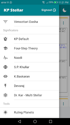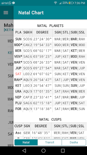 Excellent app in kp world, i would like to a suggestion add up to prana lord in cups and planet level in natal, in transit also, oneother else color code of sinifacators as strong is green, bad is red, supportive is yellow ete .... please add up to prana lord as planet and cups level as soon as possible.