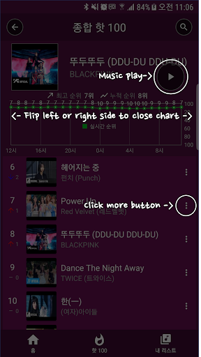 It shows real-time K-pop ranking in conjunction with various internet sound source chart information.
