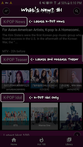 The latest K-pop music is linked with the Internet sound source chart information to inform the real time ranking information.