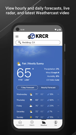 The KRCR News Channel 7 app delivers news, weather and sports in an instant. With the new and fully redesigned app you can watch live newscasts, get up-to-the minute local and national news, weather and traffic conditions and stay informed via notifications alerting you to breaking news and local events.