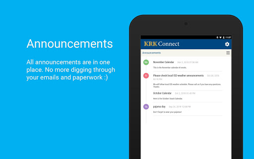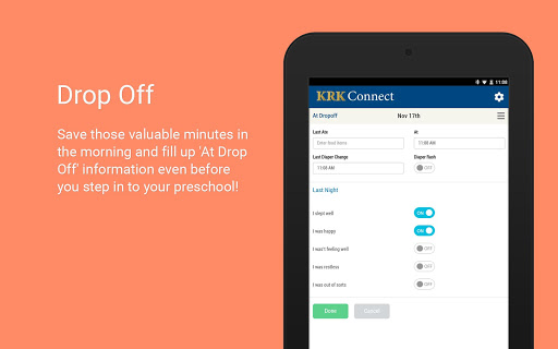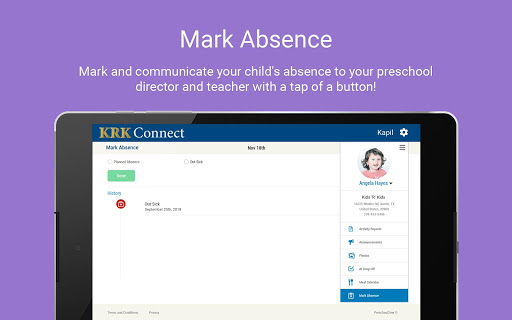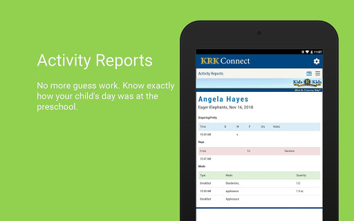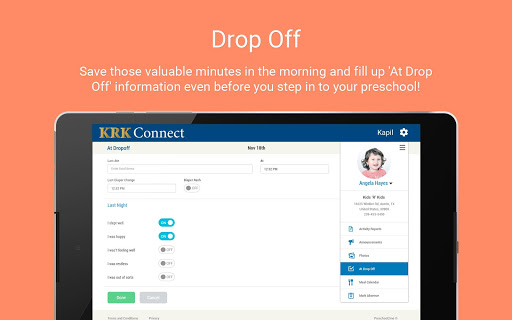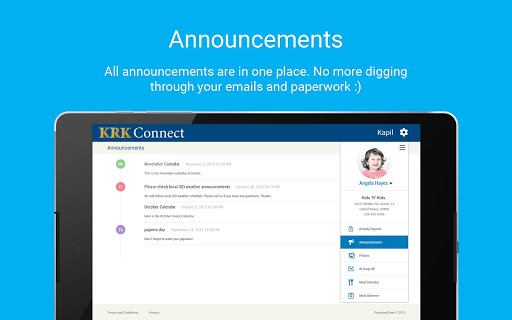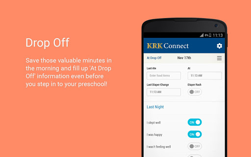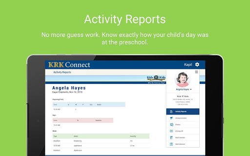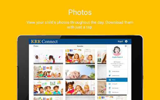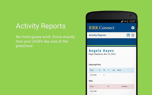 KRK Connect makes it easy for parents to view their child’s pictures, activity reports, announcements sent from the preschool. Parents can even communicate with the preschool by sending At Drop Off and Absence information. No more viewing information just via email. Enjoy the ease of viewing everything you want to know about your child’s day right at your fingertip!