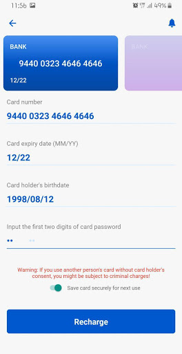-Save 3 banks cards in the device securely