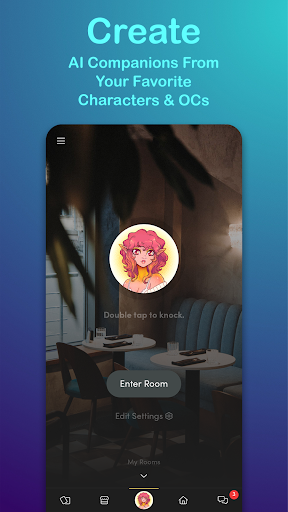Create chat rooms to chat with your AI in private or chat in a group with friends and AI together.