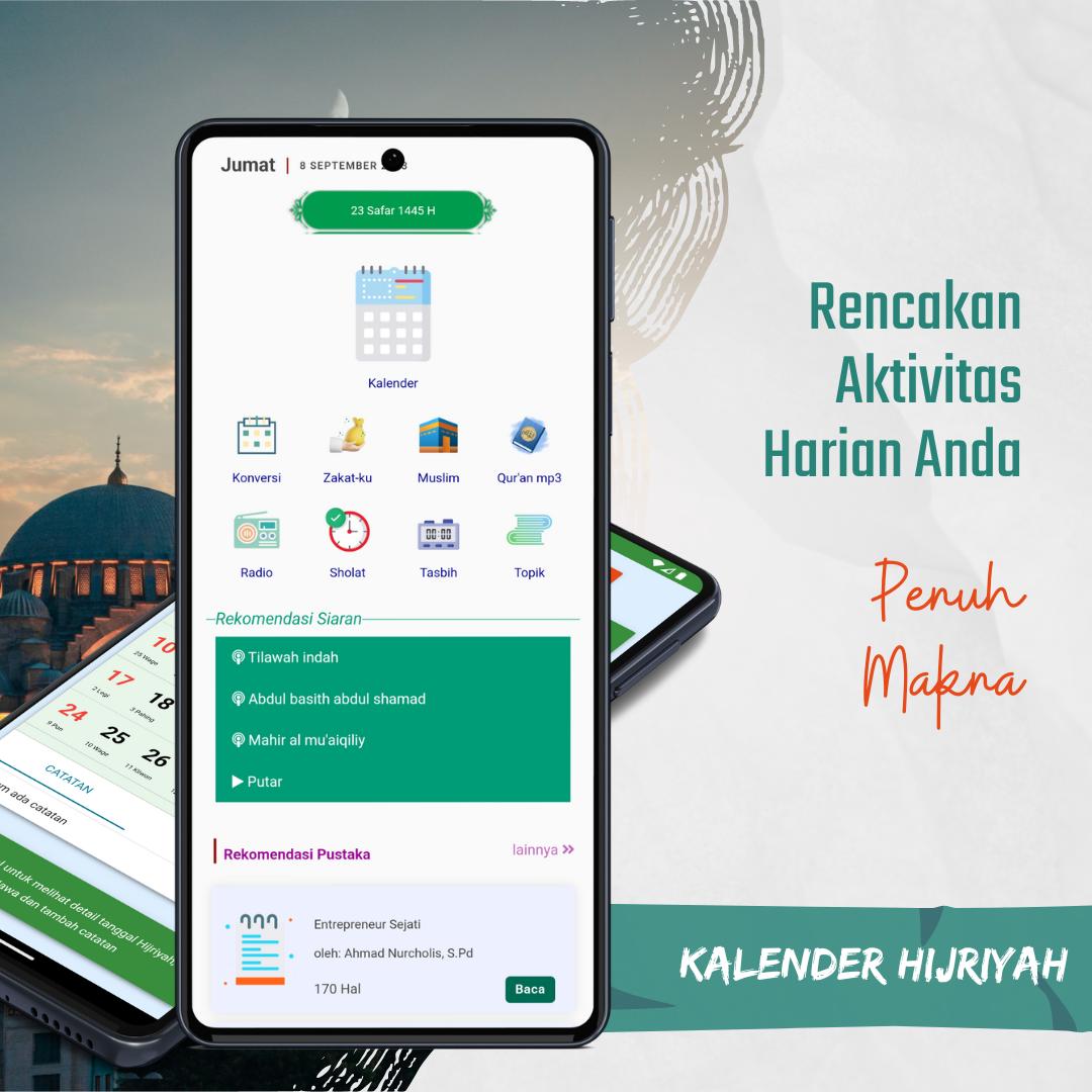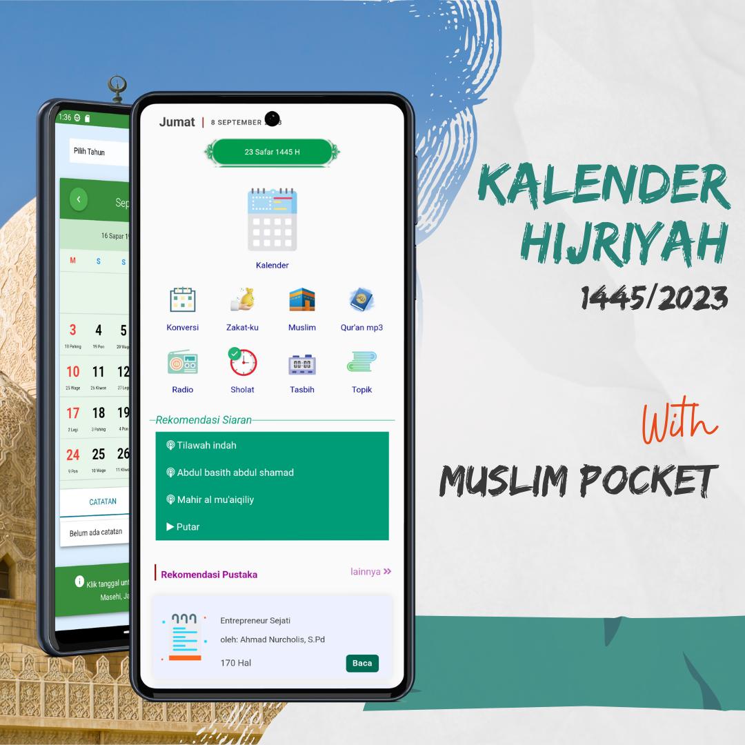 Hijriyah Calendar 1445 / 2023 application complete with Hijriyah date, Javanese calendar and Gregorian calendar. You can also increase your insight into Islamic knowledge using the Muslim Pocket and digital book features. Learning and reciting the Koran becomes easier and more fun with this application.