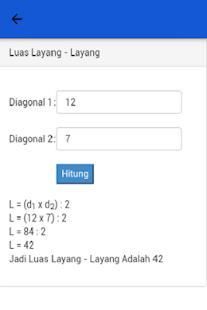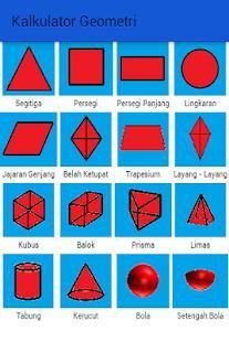 Geometry Calculator app is designed to help students to facilitate learning geometry. Simply by inputting data that has been known as a high pedestal, side, length, width etc. then the application of this application will automatically calculate area, perimeter, volume, etc. are equipped with a clear discussion to be more easily understood.
