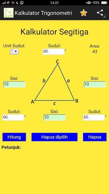 Aplikasi ini hadir untuk mempermudah dalam perhitungan sisi-sisi dan sudut-sudut sebuah segitiga, serta perhitungan Sin, Cos, Tan dan masih banyak lagi.