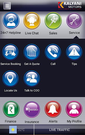 Kalyani Motors App is a unique & best in class automobile app with an aim of improving vehicle servicing and planning.Intended to help individuals book online service, view product catalogue, locate Kalyani Motors showrooms, get traffic updates, book test drives and a lot more. Kalyani Motors App is easy to adopt and needs no learning curve.