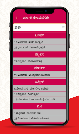 This Kannada calendar app brings you the details about public holidays such as 2020 government holidays, festivals, Pooja holidays in Karnataka cultural celebrations for Kannada speaking people.