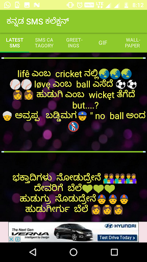 This app has largest collection of "Only Kannada Language Messages" Daily update.