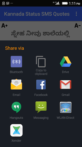 3] Share these status in Kannada via available social apps like whatsapp, facebook, twitter, sms, gmail.