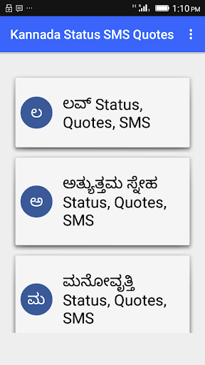 This app contains Kannada Language Status Messages for Social Media Apps. Keep updating your status on famous social apps with the help of this app.