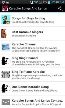 Karaoke Songs And Lyrics has top karaoke music with the lyrics shown so you don't have to guess as you sing. New songs are added everyday as they become available and updated. You will have have hours and hours of fun. Optimized for Phones, Tablets and TV