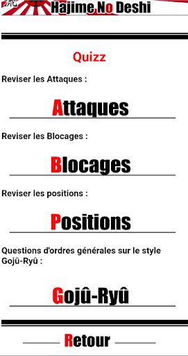 - Une partie Lexique comprenant les différents termes japonais et une partie pratique (ex : comment nouer sa ceinture, etc.)