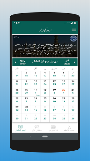 English and Hijri Calendar (The Hijri Calendar is updated every month immediately after the announcement of the Hilal Committees of Pakistan and India, for which users do not need to update the app at all)