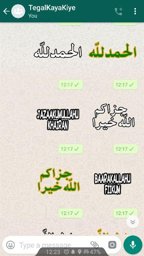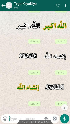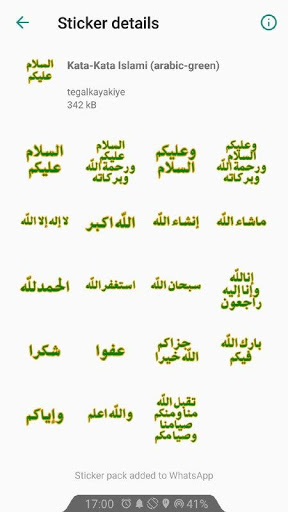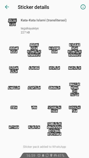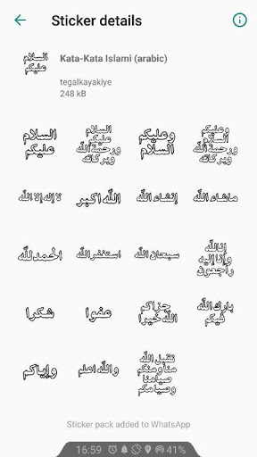 Sticker pack ini dibuat untuk memudahkan dalam mengirimkan salam atau ucapan islami lainnya dengan tulisan arab dan transliterasinya.