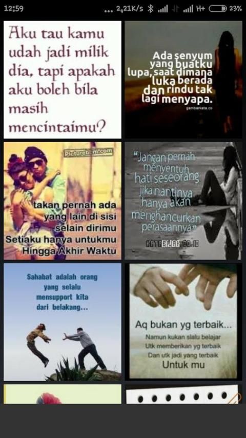 Kata kata menyentuh hati adalah aplikasi android yang berisi kumpulan gambar kata menyentuh hati, dalam aplikasi ini terdapat ratusan gambar menyentuh hati yang dapat anda jadikan sebagai DP BBM ataupun anda simpan ke perangkat anda (galeri).
