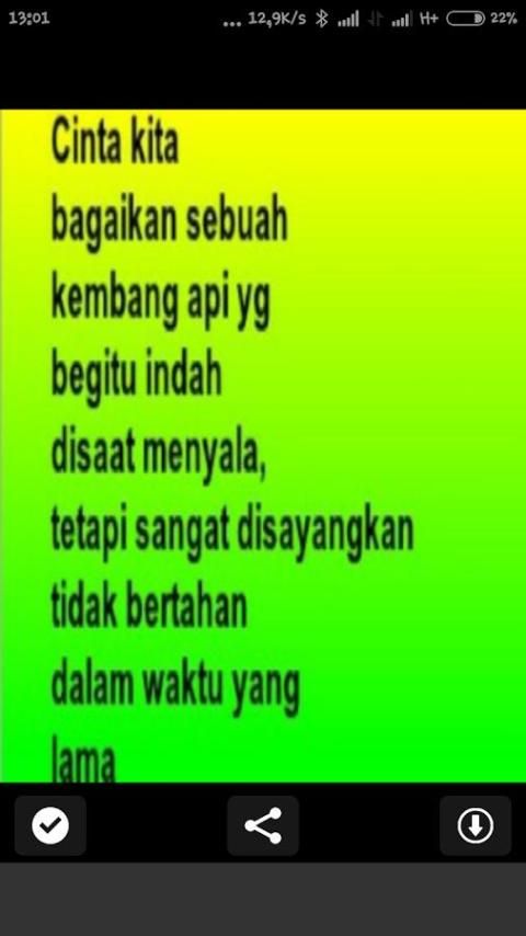 Tidak ada fakta yang meragukan bahwa 10,000+ Pengguna mendownload Kata Kata Menyentuh Hati versi terbaru di 9Apps secara gratis! Semua fungsi sudah ada dan diperbaharui. Aplikasi HOT ini di rilis tanggal 2015-09-22. Untuk membaca info lain tentang mobile apps, Anda bisa klik di 9Apps.