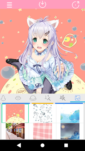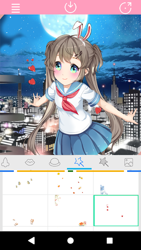 This app enable you to create your own Kawaii Anime Girl images by using the materials it offers. At present,there are only 40 basic materials for each part,but we will add more in the following versions. If you have something new or wonderful,you can email to us,we will put them in as soon as we can to meet your requirements. Thank you!