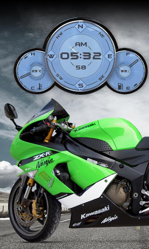 Do you dream of riding a Kawasaki Ninja ZX636 motorcycle? Now, with our "Kawasaki Ninja ZX636 Moto LWP" your dream can become a reality ! We would like to present a combination of beauty and power of technology based on your favorite motorbike model and really helpful widget with digital clock digital compass infromation from battery temperature sensor and battery level.Also, In this application we have implemented a smooth parallax effect with wonderful hd background. Our live wallpaper optimized for phones and tablets modes, contains hd graphic and great atmosphere for all motorcycles lovers from true moto maniacs.The Kawasaki Ninja ZX-6R is a Kawasaki 600 cc class sport motorcycle. It was introduced in 1995, and has been constantly updated throughout the years in response to new products from Honda, Suzuki, and Yamaha. The ZX series is what was known as the Ninja line of Kawasaki motorcycles in the 1980s and still carries the name today. Kawasaki introduced the ZX-6R in 1995 with very similar looks and features like the 1994 introduced ZX-9R, including the ram-air intake that had been developed by Kawasaki since the 1990 ZX-11 (ZZ-R1100). The first ZX-6R had a dry weight of 401.2 pounds (182.0 kg), wet weight of 454 pounds (206 kg), and was capable of accelerating 0 to 60 miles per hour (0 to 97 km/h) in 3.6 seconds.