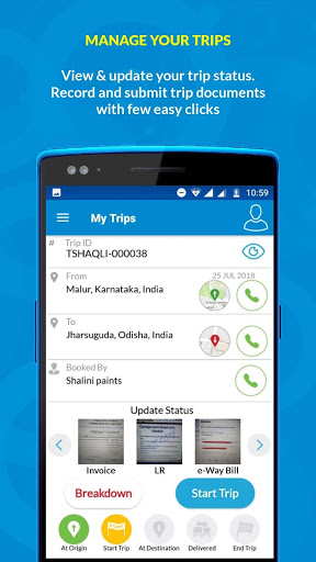 loading / unloading details, type of goods, freight rate etc. directly on the app.